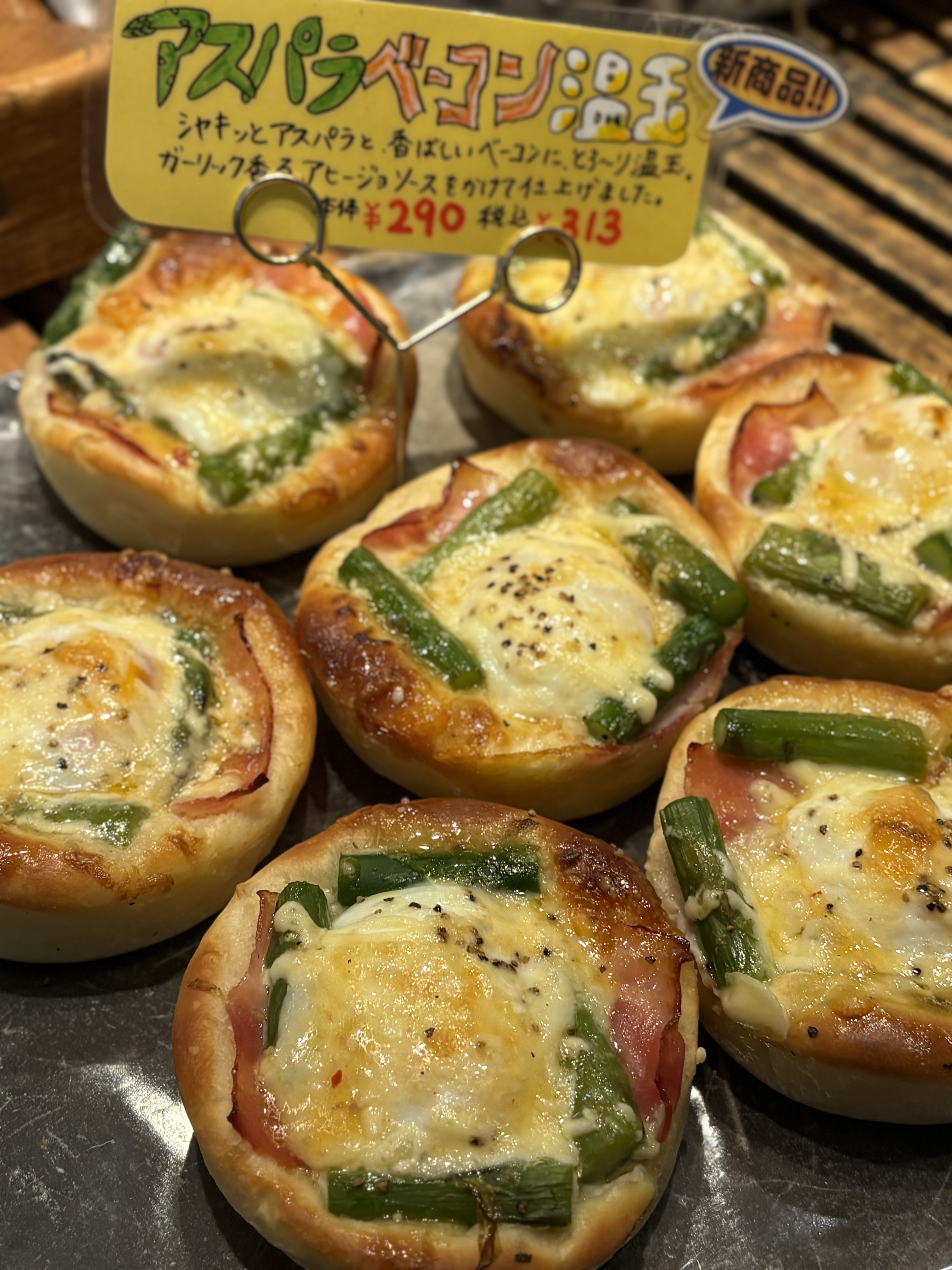 シャキッとアスパラと香ばしベーコンにとろ〜り温玉。 ガーリック香るアヒージョソースをかけて仕上げました!