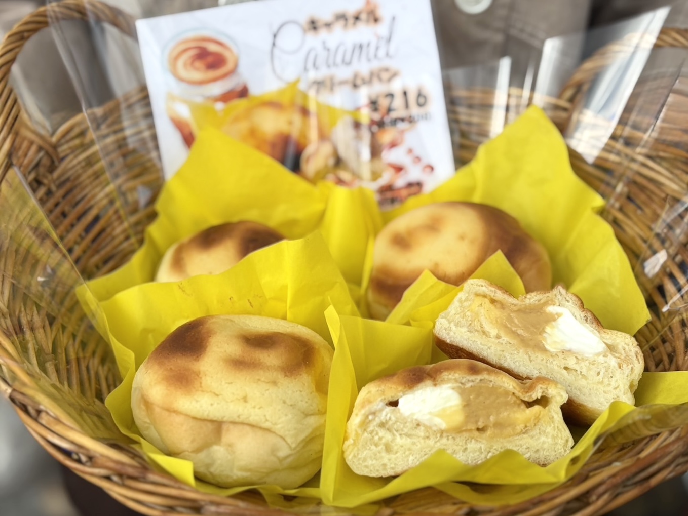 自家製のキャラメルカスタードと九州産クリームチーズを包んでチーズケーキフィリングを絞って焼き上げました!