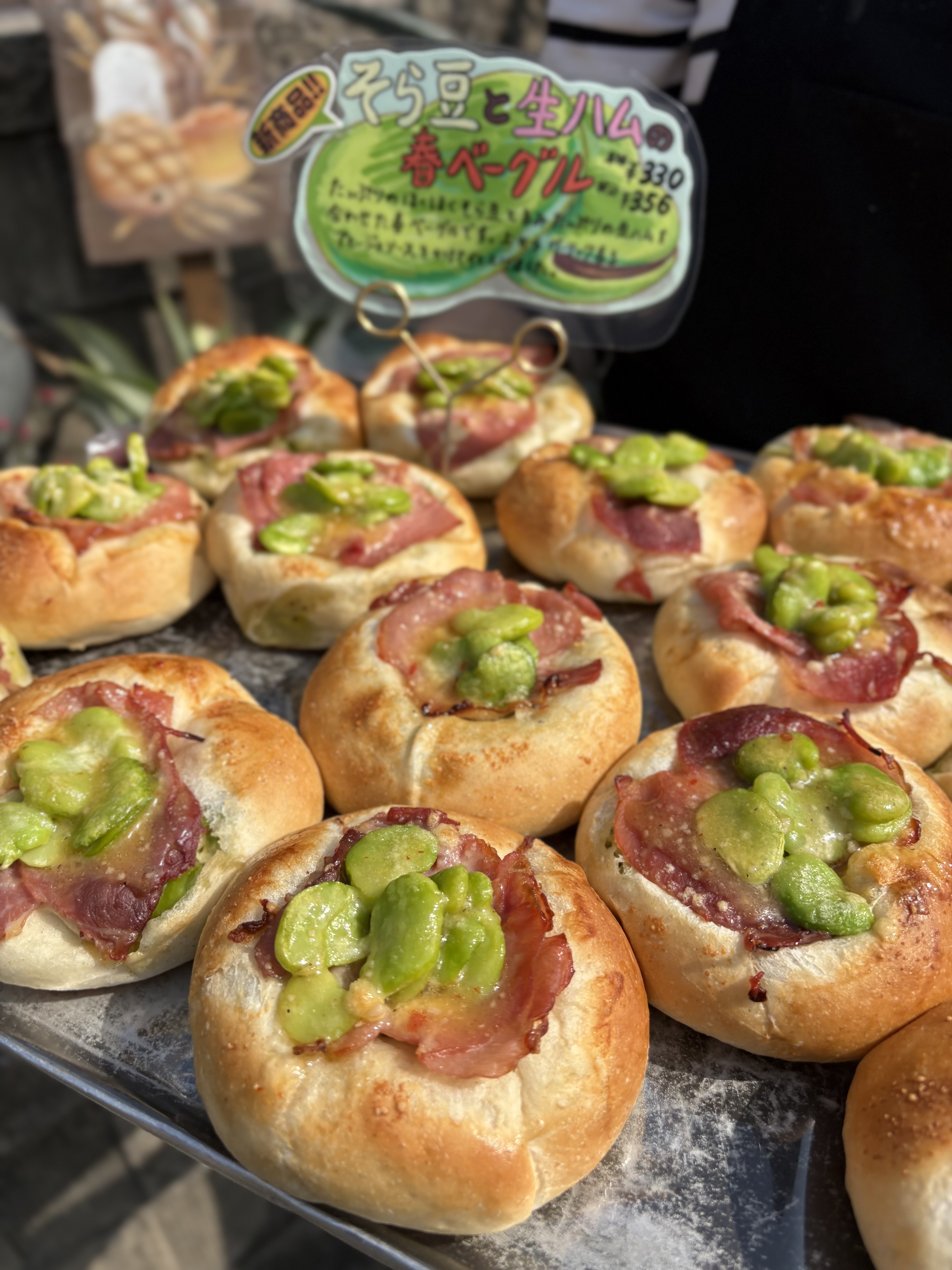 ほくほくそら豆と生ハムを合わせた春ベーグルです!