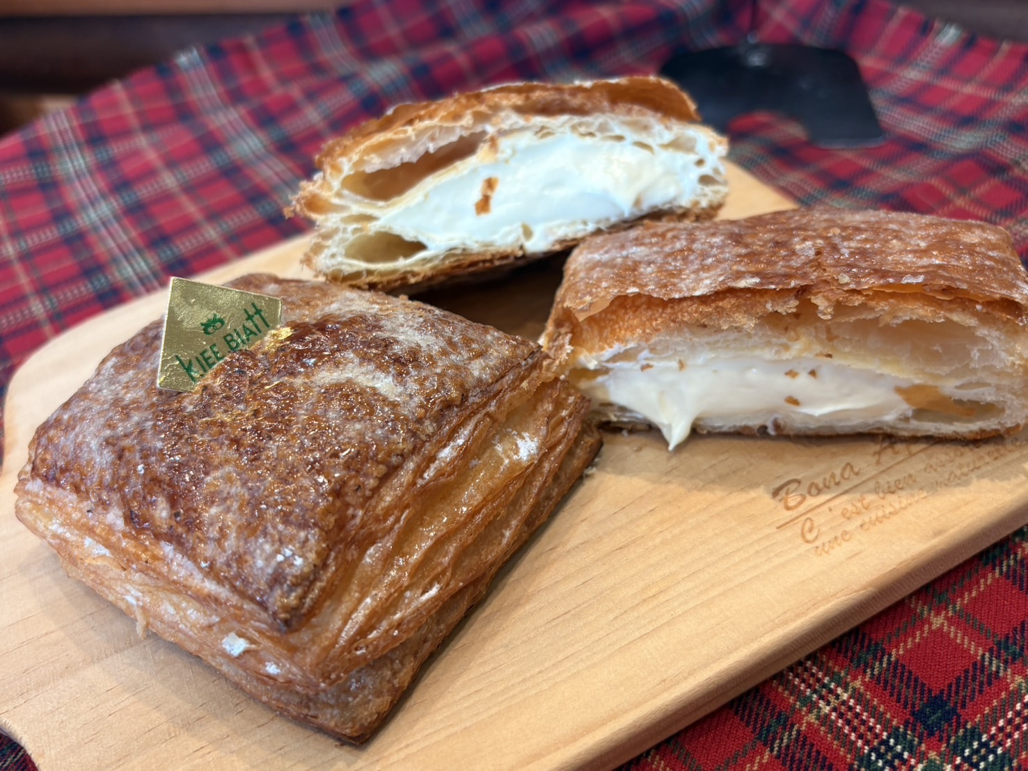 マーガリンをたっぷり折り込んだ、サクサクの生地に、カスタードホイップクリームをたっぷり詰めたシュークリームみたいなデニッシュです!